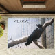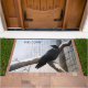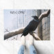 A black raven sitting on a tree branch, Winter and trees all around with snow falling