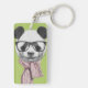 This design features a cute panda bear wearing eyeglasses and a pink knit scarf.