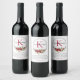 Winter Red Floral Custom Monogram Name on White Wine Label
