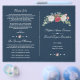 Elegant Charming design featuring watercolour winter holidays bouquets (red and white flowers, pine, cones, holly berries, missile toe, eucalyptus leaves) and modern floral dividers, on a navy blue background. Use Personalise tool to add your info.