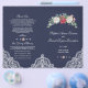 Elegant, romantic design featuring gorgeous watercolour floral bouquet (red and white flowers, holy berry, mistletoe eucalyptus foliage) lace corners, a floral divider, all on midnight blue background (it can be changed). Use Personalize this template to add your info. For matching items, please, visit my Winter New Holidays Collection.