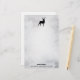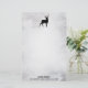 Stationery paper with an image featuring a black silhouette reindeer with big antlers. Gray watercolor background.