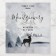 Personalized wine making bottle labels with a watercolor image featuring a black silhouette reindeer standing among some pine trees. Gray black and white neutral color scheme.