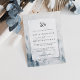 Elegant winter wedding invitation features a watercolor background depicting a snowy mountain landscape dotted with pine trees in misty shades of blue and gray. Personalize with your wedding details in chic soft off-black lettering, topped with your monogram or duogram joined by a decorative script ampersand. A beautiful choice for elegant winter weddings in mountain or forest settings. Silver foil trim completes the design for a luxe look.