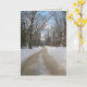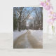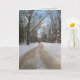 Winter photography card. Blank greeting card with snow along a tree-lined dirt road.