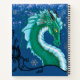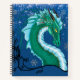 Blue, green and teal dragon profile portrait with snow falling all around. Black tribal rose.