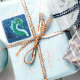 Blue, green and teal dragon profile portrait with snow falling all around. Black tribal rose.