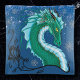 Blue, green and teal dragon profile portrait with snow falling all around. Black tribal rose.