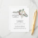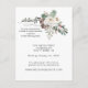 Greenery of pine with white roses make an elegant floral wedding details card. Further accentuated with subtle berries and pine cones. Calligraphy graces the design to set it apart simply, but effectively. It is feminine and stylish, with an edited palette of white, deep pine green, and soft red.