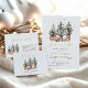 This design features watercolor Christmas trees in soft, rustic shades of green, adorned with natural brown and beige-toned baubles.