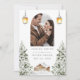 Announce your wedding in cozy winter style with this rustic save the date card. Featuring a charming snowy cabin scene framed by evergreen trees and lanterns, this design exudes warmth and natural elegance. Add your photo and personalize the names and date for a unique, heartfelt keepsake your guests will love.