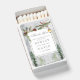 Light up your celebration with these winter rustic pine chic botanical lantern wedding matchboxes. Featuring a charming pinecone and lantern design, they make for a beautiful and functional addition to your winter-themed wedding or event. Perfect for lighting candles or sparklers, these matchboxes can also be customized with the couple's names and wedding date. An ideal favor for guests to take home as a keepsake of your special day.