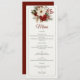 Add seasonal charm to your reception with this winter wedding menu. Designed with festive red and ivory florals, pine sprigs, and elegant calligraphy, it’s perfect for rustic Christmas weddings. A beautiful way to showcase your courses with holiday warmth.