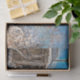 Rustic winter snow covered cabin craft decoupage tissue paper. Blue sky white winter woodland trees scenery. Image copyright Marg Seregelyi Photography.