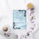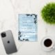 This elegant wedding invitation features a winter wonderland scene in shades of blue, complete with snow-covered pine trees. The silver frame adds a touch of sophistication to the design. Perfect for a winter wedding, this invitation will set the tone for your special day. Personalize it with your own special occasion.