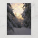 Winter sky postcard. Winter in New Hampshire shows snow covered trees lining a snow covered road and sunshine on clouds.