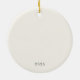 Lightweight, smooth, pure white ornament with nice sheen. Perfect size to be seen from across the room ... and to attract closer inspection! Price was great for ordering enough for the whole family! Clear, bold black design just as requested. Matches the order exactly. Just so nice!