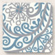 This coaster set shows a beautiful blizzard of windswept snowflakes in platinum gray and icy blue on a creamy white background.