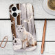Phone case featuring an illustration of a winter wonderland scene with a snow fox and white dove. Nice for an animal lover or a great Christmas gift.