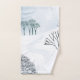 A snowy winter landscape scene with trees and a dry stone wall. Original art by Nic Squirrell.