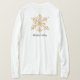 Simple modern minimalist fashion style for winter times,around Christmas,New Year’s Eve,for family,friends colleagues gatherings.Golden hand drawn snowflakes with a touch of peach make a cute festive feminine girly outfit .Typography text script customization possibilities or even delete the text if you wish.Can also make a great fashionable long sleeve T shirt gift idea for her.