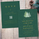 Winter Wedding qr code invitation Invitation with Watercolor Fir Trees and snow and elegant Modern Typography on dark emerald green