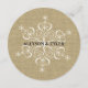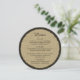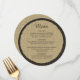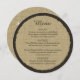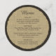 Snowflake design rustic winter small round menu with dark brown text. Personalize text as preferred and add the bride and groom's name or other text on back.