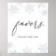 Favors sign featuring an illustration of silver faux glitter snowflakes with the word "favors" in a fun calligraphy script.