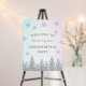 Welcome your guests to your winter wonderland themed gender reveal party with this beautiful welcome sign! Featuring a stunning silver glitter woodland and snowflake design, set against a baby blue and pink sky background, this sign is the perfect way to welcome your friends and family to your special event. With its elegant design and high-quality materials, this sign is sure to impress your guests and create a memorable experience. So why wait? Order your gender reveal party welcome sign today and start planning the perfect celebration!