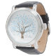 Winter Snowflake Tree Vintage Leather Strap Watch
