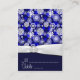 Winter Snowflake Wedding Reception Place Cards - feature a snowflake print with an elegant printed white ribbon with a diamond round buckle embellishment. Use a colored gel or paint pen (found in department stores across the globe) to write each guest's name and table number on the cards. The back is shaded in navy blue. The card stock is set to basic satin finish; you can click on the orange customize button above to change the stock to linen, platinum, pearl and a variety of other choices if you prefer. You can also change the text, font coloring, sizing and more by clicking the orange customize button. These snowflake winter wedding reception placement cards match the suite found below.