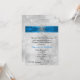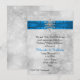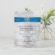 Elegant winter wedding rehearsal dinner invitation done in a white and light gray sparkly looking background. Graphics of a rich azure blue satin looking ribbon with white lace edges, runs across the top of the invitation and is decorated, in the middle, with a silver tone and diamond looking snowflake jewel. Personalize the black and azure blue colored text to suit your needs. Chose from many different card stock options for the look you like best. Matching RSVP and envelopes available available.