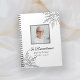 Funeral Guest Book. This classy custom wintery memorial tribute notebook features intricate gray snowflakes adorning the corners with a white background. Personalize it with birth and death date, name and picture.
