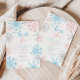 Plain white envelopes are included with paper invitations and will come to fit the invitation size you select. If you don’t need the envelopes, you may choose to not receive them by selecting the dropdown below "Envelopes" and choosing "None." If you’d like to have a design on your envelopes, you can browse all of these available envelopes to find the design that complements your Winter Snowflakes Gender Reveal Invitation.