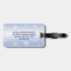 Make your luggage stand out on an airport carousel with unique tag designs! This lovely winter luggage tag creates a seasonal feeling in blue and white with lovely snowflakes floating throughout. The back has your personal information and more snowflakes. All text can be customized.