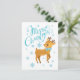 This design features a winter scene of a cute deer walking through snowflakes with the popular text "Merry Christmas" written in popular blue typography.