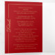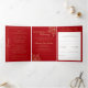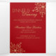 Elegant gold snowflakes and sparkle, red tri-fold wedding invitation with completely editable text. All of your details, information and response card on the same invitation.
