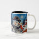 Winter Snowman & Red Cardinal Bird Watercolor Art Two-Tone Coffee Mug