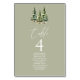 Winter Snowy Pine Tree Forest Wedding Table Number
