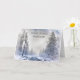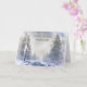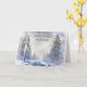 A beautiful snowy landscape featuring tall pine trees along a serene stream, perfect for a customizable Winter Solstice greeting card.