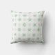 Winter green star and light blue snowflake pattern on Christmas cushions.