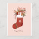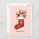 Winter Stocking with gift boxes, flower Christmas Postcard