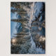 A winter sun flares behind a stand of snow-covered pine trees on this beautiful puzzle of a Western America landscape. Mountains, trees, a rocky river all covered in snow will make this challenging puzzle a favorite.