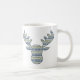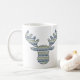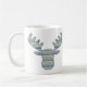 Layers of patterns inspired by designs found in Nordic sweaters create a wonderful winter feeling with snowflakes, mountains, and evergreen trees. A moose head masks the repeating pattern to create a cute and fun image for the cold months. This mug is available in a variety of colors, sizes, and styles including classic mugs and steins.