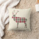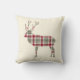 Tartan design by Pine And Berry featuring a deer in cranberry red, tan, coal and ivory tartan on an ivory color background. The back of this designer pillow is rich cranberry red. Great for Christmas, holiday, Xmas decorating in a rustic, woodsy, folksy, country living, wintery (wintery) scenic, or woodland style. This deer silhouette, compliments decor featuring other animals with antlers such as reindeer, moose, antelope, and elk designs.