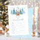 Elegant and sophisticated "Baby word scramble" game, designed for a winter festive themed baby boy shower. Featuring a charming teddy bear wearing a cute winter hat and scarf and holding blue balloon, surounded by snowy pine trees and baby blue gingham pattern at the back, this classic game adds a touch of timeless style and fun to your event. Perfect for entertaining guests and creating cherished memories, it’s an ideal addition to a sweet and preppy baby shower celebration.