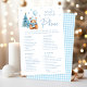 Add a touch of elegance to your winter themed baby boy shower with our sophisticated "What's in your phone" game. Featuring a charming teddy bear wearing winter hat and a scarf, holding blue balloon, surrounded by pine trees and snowflakes, this delightful activity is perfect for entertaining your guests and creating lasting memories. Ideal for adding fun and excitement to your special celebration!