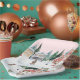 I ordered personalized baby shower plates and I loved them and they were delivered on time they were personalized with thanks for showering our little peanut. The printing turned out good but edge of plates had like tears around the edges I would recommend them to any one having a baby shower or party