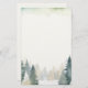 This letter paper showcases a delightful hand painted style watercolor illustration of snow dusted pine trees standing gracefully against a soft blue winter sky. The gentle snowflakes and charming evergreens evoke a peaceful, wintry ambiance, making it perfect for letter writing, note taking, to do lists, and sending warm seasonal wishes. Its serene design brings a touch of seasonal beauty and calm to any message during the holiday season.