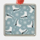 Winter themed pattern with ice skates metal ornament
